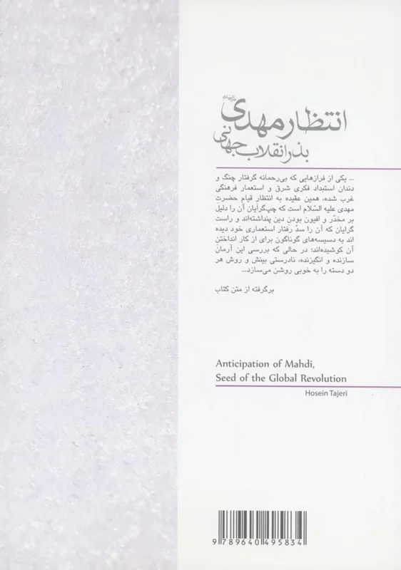 کتاب انتظار مهدی عجلاللهتعالیفرجهالشریف بذر انقلاب جهانی به نویسندگی آقای غلامحسین تاجرینسب از آن دست کتب کمحجم ولی در عین حال گیرا و با معارف بالایی است که که درباره موضوع " یادی از ظهور و قیام امام زمان عجل الله تعالی فرحه الشریف " نوشته شده است. مباحث یک سیر منطقی و مستدل دارند که با خواندن دقیق و جزء به جزء کتاب، مقصد و منظوری که مورد نظر نویسنده است، کاملا کسب شده و خواننده میفهمد که چرا خوانده و چگونه و از چه مسیری به اینجایی که باید، رسیده است. از جمله مباحث بسیار باارزش کتاب میتوان به ظهوری در درون و مسأله یاس و ناامیدی اشاره کردکه دچار شدن به آن انسان را از آنچه میخواهد دور میکند. اساسا در کتاب بیان شده که منتظر واقعی منفعل نیست باید سختکوش در آمادهسازی شرایط ظهور برای خودش و دیگران باشد. و در قسمت انتهایی کتاب به افرادی اشاره میکنند که در طول تاریخ با اندیشههای اشتباه و مدیریت بر مردم، از آنها سوءاستفاده کرده و آنها را از سرزمین حقیقت دور کردند، مانند بابیها، قادیها و کسرویها. کتاب بسیار پربار و غنی از معارف بالای مهدوی میباشد که خواندن آن به هر طالب حقیقتی پیشنهاد میشود.