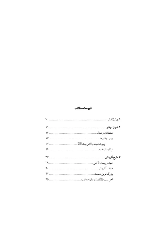 در این کتاب شوؤن مختلف امامت آن حضرت و چگونگی تحقق آن در زمان غیبت بیان میشود. با خواندن این کتاب خواهیم فهمید که وظیفۀ ما نسبت به ایشان چیست تا بتوانیم در سایۀ انجام وظایف خود دریچۀ قلبمان را برای پذیرش معرفتِ حضرت باز کنیم. ابتدای کتاب تا میانههای آن متنی ثقیل و ادبی دارد. شاید برای آنکه با طمأنینه و تأمل بیشتر کتاب را ورق بزنیم و با هر کلمه و جملهاش بتوانیم پیوند قلبی برقرار کنیم. تا نکات نابی که در ارتباط با امام زمان و تعلق خاطر به او بیان شده جرعه جرعه گوارای جان و دلمان شود. از میانۀ کتاب مفاهیم و معارف ذکر شده با زبانی سادهتر بیان شده تا قابل درک و فهم باشد. شاید همراه داشتن قلم و کاغذ در این بخش کتاب کمک کند تا رشتۀ مطالب را از دست ندهیم و با کتاب همراه باشیم. در انتهای کتاب بار دیگر ندبه و نوای شیعهای جدا مانده از صاحب و مولایش را میشنویم که به سویش دست تمنا و یاری بلند کرده است. با آن که از دیدارش محروم است امید دارد تا مولایش خود را به او بشناساند.